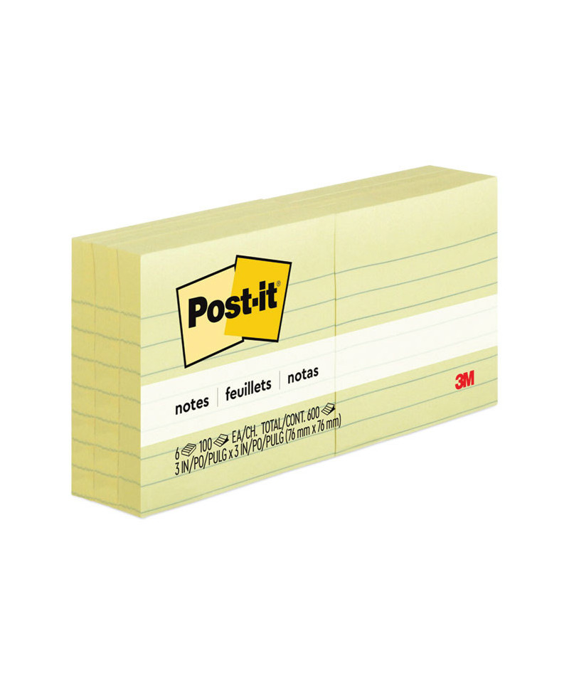 Original Pads in Canary Yellow, Note Ruled, 3" x 3", 100 Sheets/Pad, 6 Pads/Pack