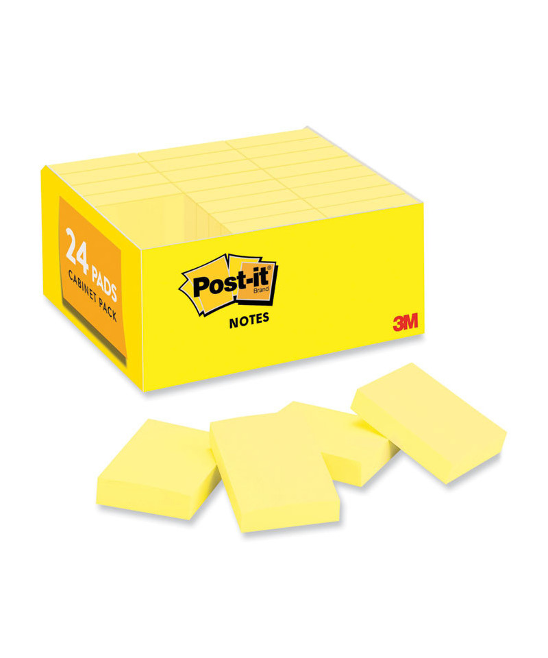 Post-it® Notes stick securely and remove cleanly, featuring a unique adhesive designed for use on paper. America's #1 favorite sticky note, they are great to call out important information or leave notes in calendars or planners. Canary Yellow color helps your notes stand out. Post-it® Notes are recyclable.