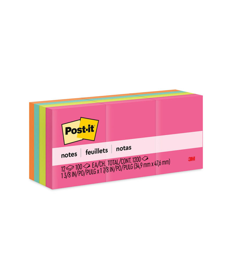 Post-it® Notes stick securely and remove cleanly, featuring a unique adhesive designed for use on paper. America's #1 favorite sticky note, they are great to call out important information or leave notes in calendars or planners. The Poptimistic collection gives your messages pop and optimism with bright colors that grab attention. Post-it® Notes are recyclable.