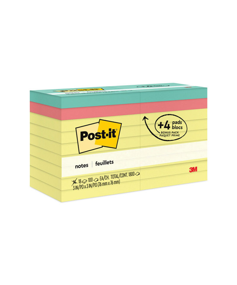 Original Pads Assorted Value Pack, 3 x 3, (14) Canary Yellow, (4) Poptimistic Collection Colors, 100 Sheets/Pad, 18 Pads/Pack