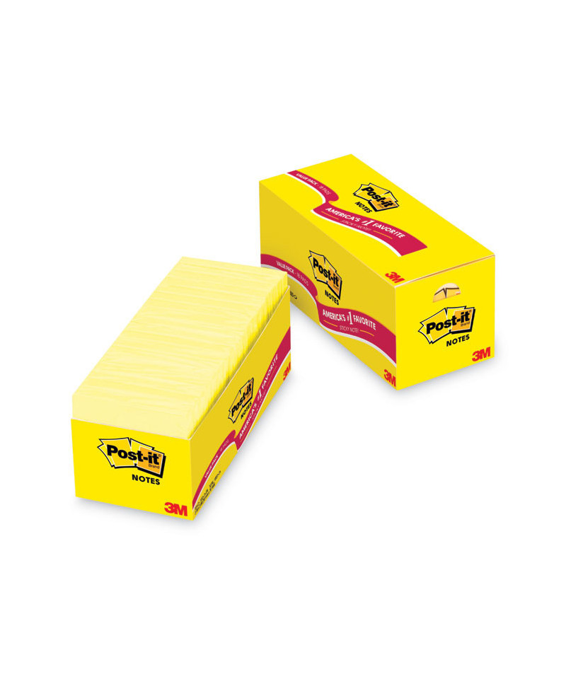 Post-it® Notes stick securely and remove cleanly, featuring a unique adhesive designed for use on paper. America's #1 favorite sticky note, they are great to call out important information or leave notes in calendars or planners. Canary Yellow color helps your notes stand out. Post-it® Notes are recyclable.