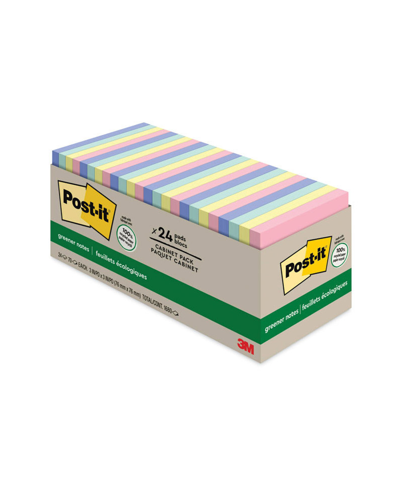 Add to cart Recycled Note Pads, 3 x 3, Assorted Helsinki Colors,... $57.73 Made using plant-based adhesive and recycled paper, these removable notes stick securely and remove cleanly.