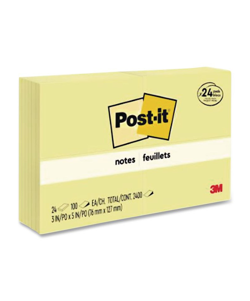 Post-it® Notes stick securely and remove cleanly, featuring a unique adhesive designed for use on paper. America's #1 favorite sticky note, they are great to call out important information or leave notes in calendars or planners. Canary Yellow color helps your notes stand out. Post-it® Notes are recyclable.