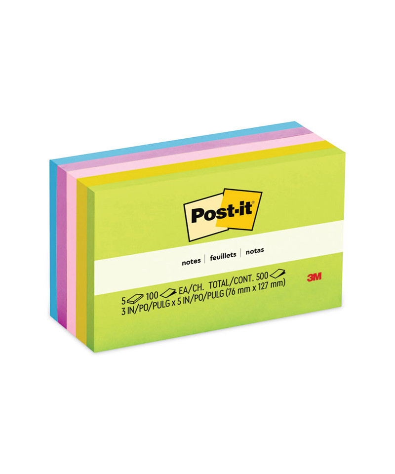 Original Pads in Floral Fantasy Collection Colors, 3" x 5", 100 Sheets/Pad, 5 Pads/Pack