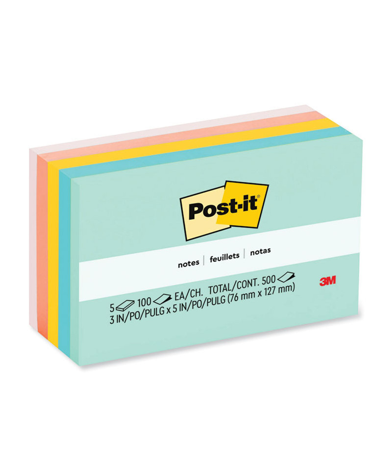 Original Pads in Beachside Cafe Collection Colors, 3" x 5", 100 Sheets/Pad, 5 Pads/Pack