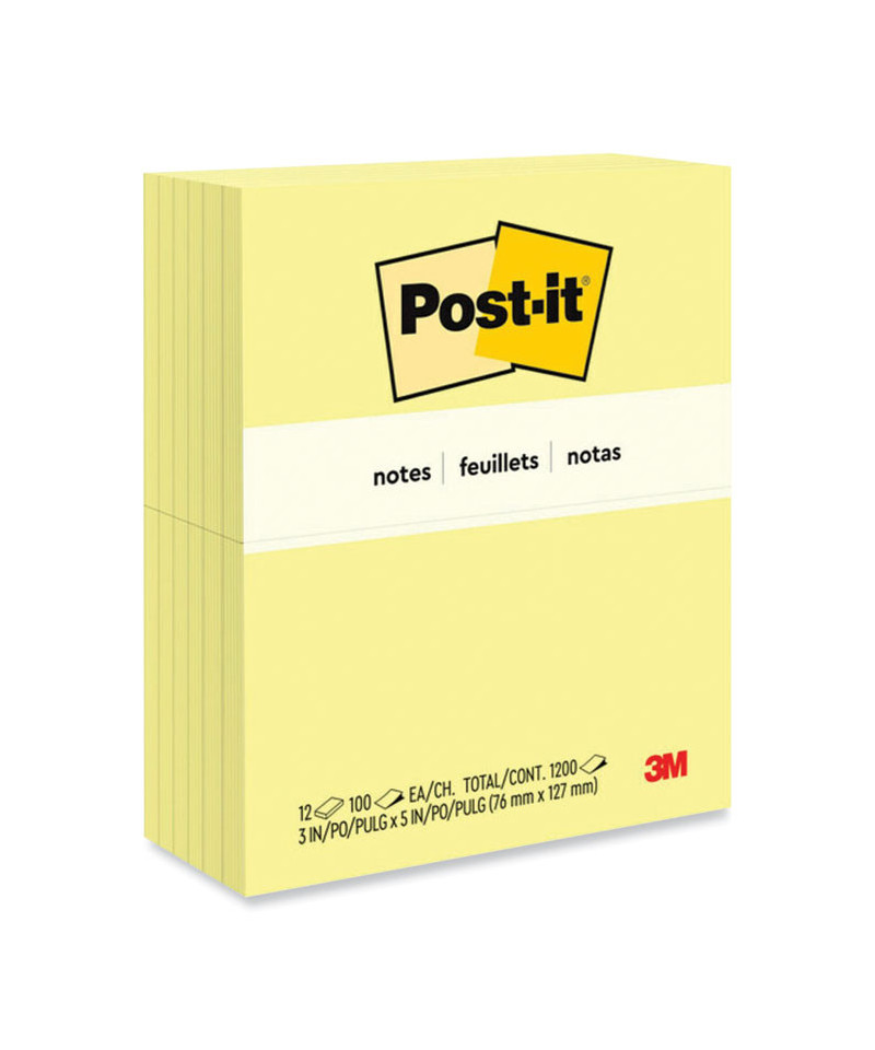 Post-it® Notes stick securely and remove cleanly, featuring a unique adhesive designed for use on paper. America's #1 favorite sticky note, they are great to call out important information or leave notes in calendars or planners. Canary Yellow color helps your notes stand out. Post-it® Notes are recyclable.