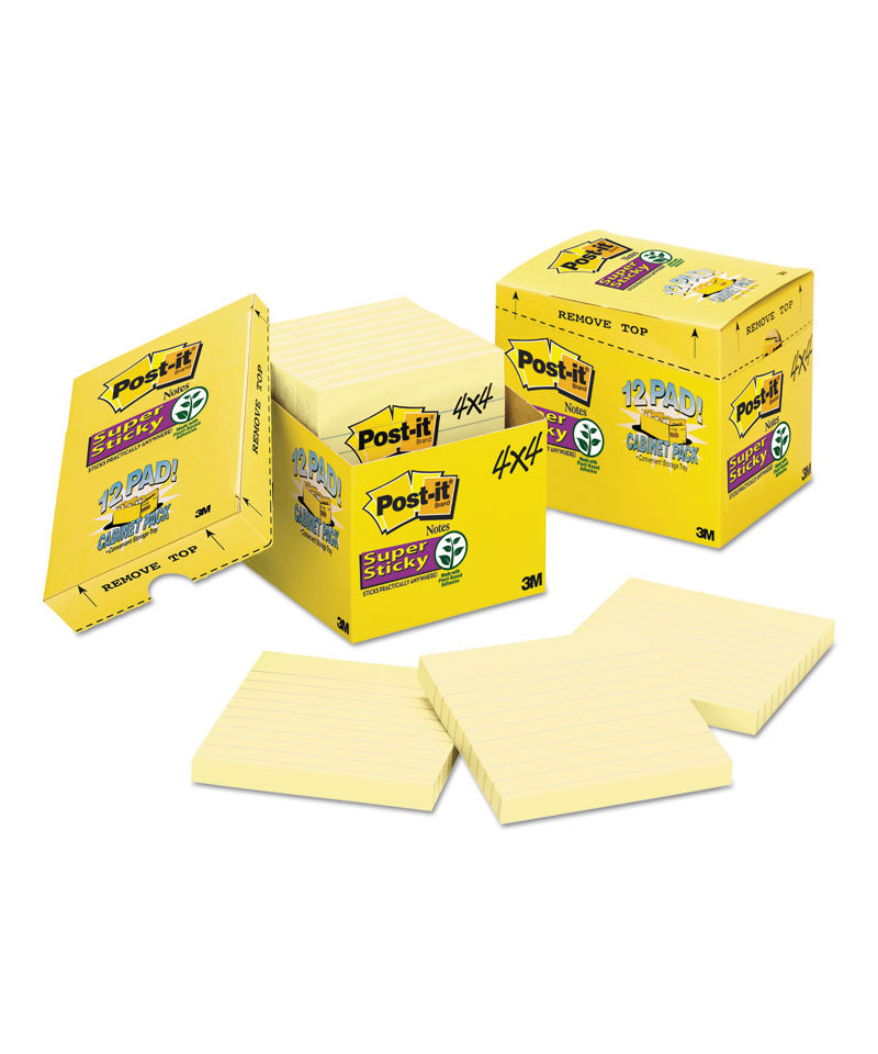 Pads in Canary Yellow, Note Ruled, 4" x 4", Cabinet Pack, 90 Sheets/Pad, 12 Pads/Pack
