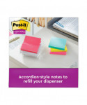 Post-it® Super Sticky Dispenser Notes in 3 x 3 feature 2x the sticking power. These accordion-style notes are specially designed to work in Post-it® Note Dispensers, and allow you to always have a note nearby to capture great ideas. Unique adhesive reliably sticks and re-sticks so your message can stay front and center. Move your notes with you throughout the day. Use for notes or reminders on doors, windows or walls. Colorful hues brighten your day. Post-it® Super Sticky Dispenser Notes are recyclable.