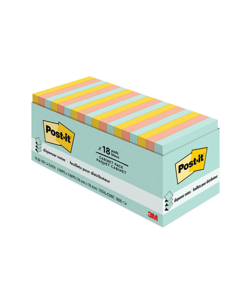 Original Pop-up Refill Cabinet Pack, 3" x 3", Beachside Cafe Collection Colors, 100 Sheets/Pad, 18 Pads/Pack