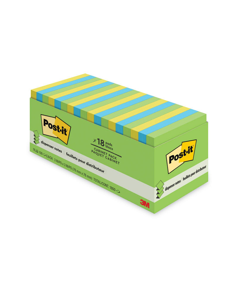 Post-it® Dispenser Notes, 3 x 3, are accordion-style notes specially designed to work in Post-it® Note Dispensers. With these notes, you'll always have a note nearby to capture great ideas. Unique adhesive is designed to work on paper or in planners. Use for notes or reminders to yourself or others. Great for office, school or work area. Post-it® Dispenser Notes are recyclable.