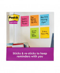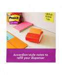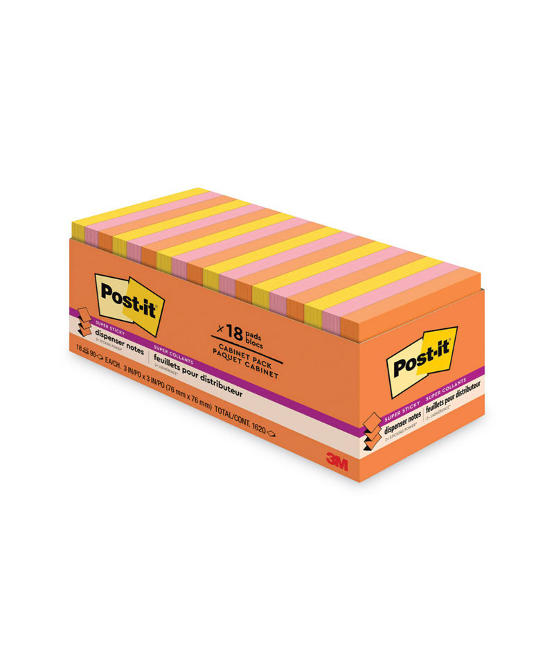 Post-it® Super Sticky Dispenser Notes in 3 x 3 feature 2x the sticking power. These accordion-style notes are specially designed to work in Post-it® Note Dispensers, and allow you to always have a note nearby to capture great ideas. Unique adhesive reliably sticks and re-sticks so your message can stay front and center. Move your notes with you throughout the day. Use for notes or reminders on doors, windows or walls. Colorful hues brighten your day. Post-it® Super Sticky Dispenser Notes are recyclable.