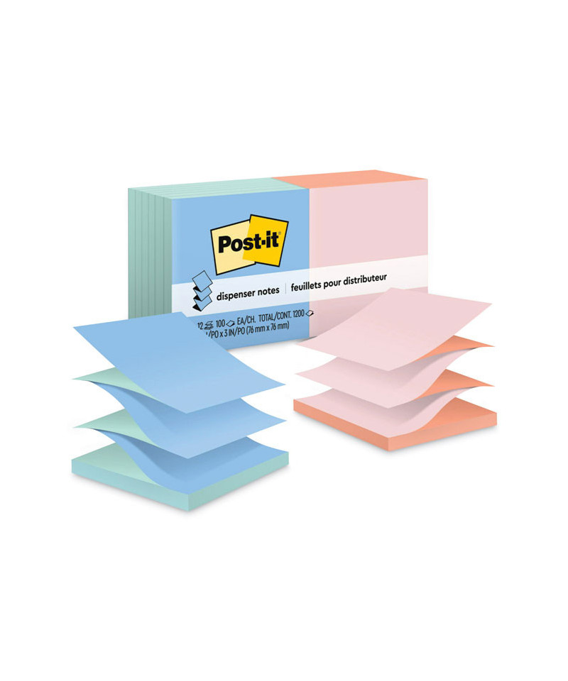 Post-it® Dispenser Notes are accordion-style notes specially designed to work in Post-it® Note Dispensers. With these notes, you'll always have a note nearby to capture great ideas. Unique adhesive is designed to work on paper or in planners. Use for notes or reminders to yourself or others. Pads are in two alternating colors. Post-it® Dispenser Notes are recyclable.