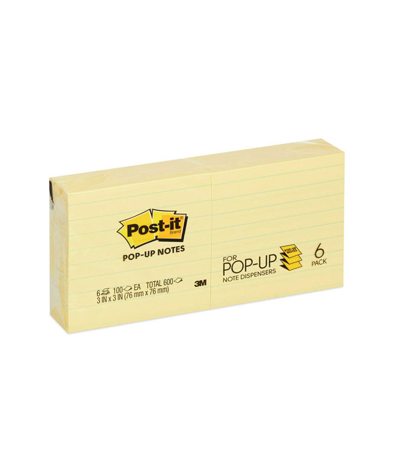 Original Canary Yellow Pop-up Refill, Note Ruled, 3" x 3", Canary Yellow, 100 Sheets/Pad, 6 Pads/Pack