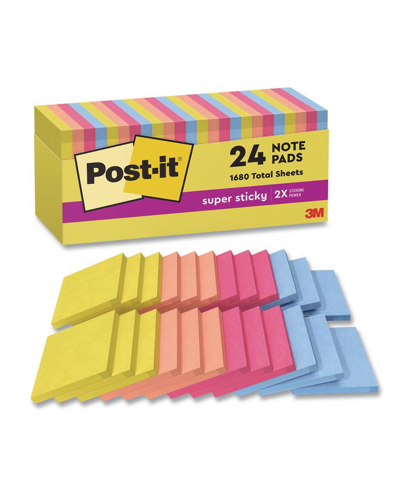 Summer colors at their most warm and inviting—capture happy memories that will last all year. Super Sticky adhesive provides twice the sticking power, yet always ensures that your notes will remove cleanly, no matter where you place them. Stick and re-stick to just about any flat surface: doors, windows, mirrors, walls and more to make sure your thoughts get noticed.