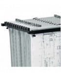 Get organized in the office with the AdirOffice Mobile Vertical Plan Center for Blueprints. For quick access, hanging blueprint storage, just clamp your files into hanging paper clamps and drop them into the top bracket. Designed for blueprints, maps and other large-format documents. Made of solid steel with a 240 lb weight capacity, this rack can hold up to 1,200 documents at once. With its durable construction and powder-coated finish, you can be certain that it will provide long-lasting strength and use throughout the years. For added convenience, this blueprint rack accommodates your largest files. The bracket accommodates 12 clamps and can be adjusted to fit paper clamps that are 36". Only one size of hanging clamps can be placed into this mobile blueprint stand at a time. An ingenious solution to the difficulties of moving documents, this mobile plan center works equally well in harsh environments such as construction sites and soft settings such as modern offices. It glides easily across spaces on its four swivel casters, two of which brake for control of movement and to keep it stable when you get to your destination.