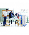 Get organized in the office with the AdirOffice Mobile Vertical Plan Center for Blueprints. For quick access, hanging blueprint storage, just clamp your files into hanging paper clamps and drop them into the top bracket. Designed for blueprints, maps and other large-format documents. Made of solid steel with a 240 lb weight capacity, this rack can hold up to 1,200 documents at once. With its durable construction and powder-coated finish, you can be certain that it will provide long-lasting strength and use throughout the years. For added convenience, this blueprint rack accommodates your largest files. The bracket accommodates 12 clamps and can be adjusted to fit paper clamps that are 36". Only one size of hanging clamps can be placed into this mobile blueprint stand at a time. An ingenious solution to the difficulties of moving documents, this mobile plan center works equally well in harsh environments such as construction sites and soft settings such as modern offices. It glides easily across spaces on its four swivel casters, two of which brake for control of movement and to keep it stable when you get to your destination.