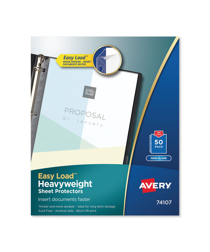 Protection of your important papers is one area where you shouldn't hesitate to throw your weight around. These Heavyweight and Super Heavyweight Sheet Protectors are super convenient, storing up to 10 sheets of 8 1/2" x 11" paper in each page. The Easy Load feature delivers a wider top opening, allowing you to slide pages into place quickly and easily. Non-glare material reduces distracting glare and is acid-free and archival safe to keep print on your papers where it belongs, rather than sticking to the plastic. With these dependable sheet protectors, your work will be strong and solid.