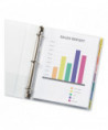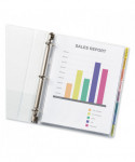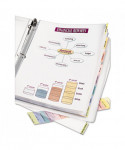 A sheet protector and index divider all in one. Insert title page into sheet protector for a customized look. Included white or color tab inserts can be labeled by hand or printed from your printer. Ideal for long-term storage, non-stick polypropylene material is acid-free and won't lift print. Top loading—no need to punch inserts. Clear binding edge for a professional look. Protects 8 1/2" x 11" insert sheets. Use free designs and templates from Avery Design & Print to create professional-looking tab labels.