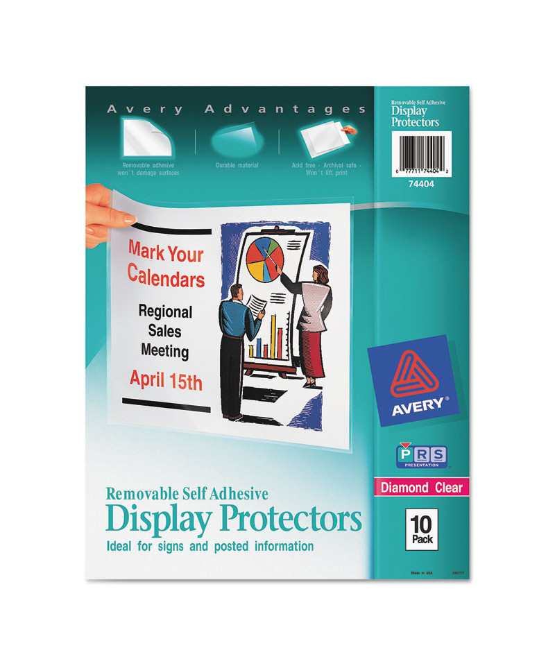Keep your signs looking clean and sharp for as long as they're posted with Avery® Removable Self-Adhesive Clear Display Protectors. Acid-free, non-stick polypropylene won't lift print from your documents, and its diamond clear finish keeps your posted information looking as good as new even after it's been hanging around for a while. There's no need to look for tape to post your information, either. Each display protector features two strips of adhesive for affixing signs securely to doors, walls and more, and the adhesive's remove-cleanly formulation keeps your surfaces damage-free when it comes time to remove your signage. With these self-adhesive display protectors, all signs point to success.