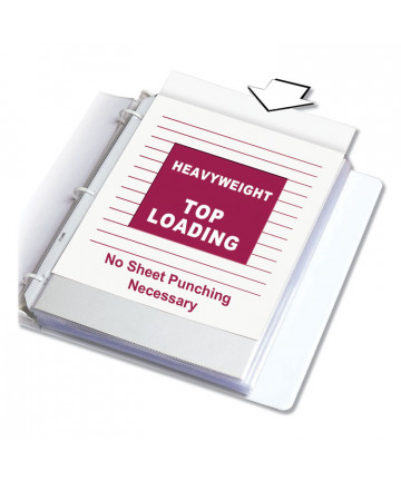 Heavier gauge sheet protector withstands constant use and provides greater rigidity to inserts. Three-hole punched for 8.5 x 11 inserts. Reinforced edge and holes won't tear or rip even with heavy usage in binders. No photocopy transfer; archival quality.