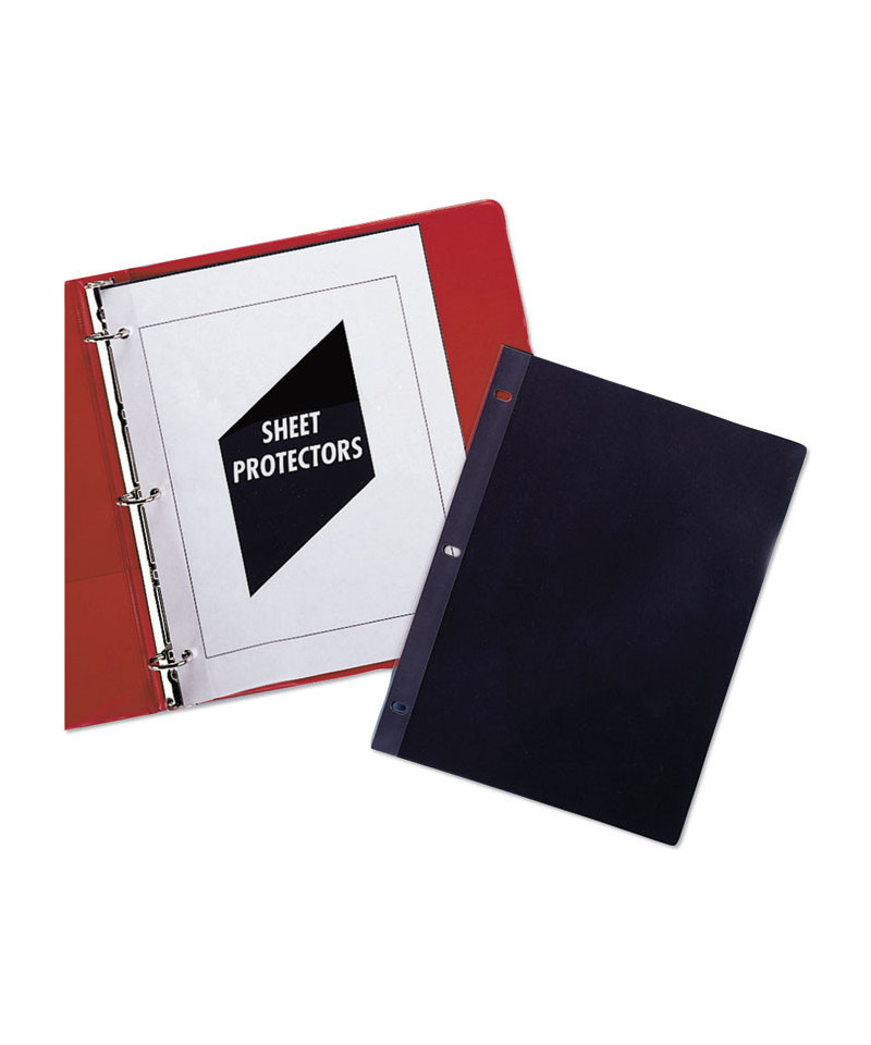 Sheet protectors are widely used as a tool to keep documents in their original condition. Once inserted into the holder, the documents instantly have a plastic, protective cover, which will help eliminate damage and tearing while they are being stored. Traditional Sheet Protectors are open on three sides, but documents are secured by a fold-over along the binding edge. The document holder includes black mounting paper for a more professional look. Polypropylene sheet protector is three-hole punched and won't crack, scratch or tear. Acid-free material eliminates photocopy transfer. This product will be cheerfully replaced with one of equal value if defective in materials, manufacturing or packaging at the time of purchase.