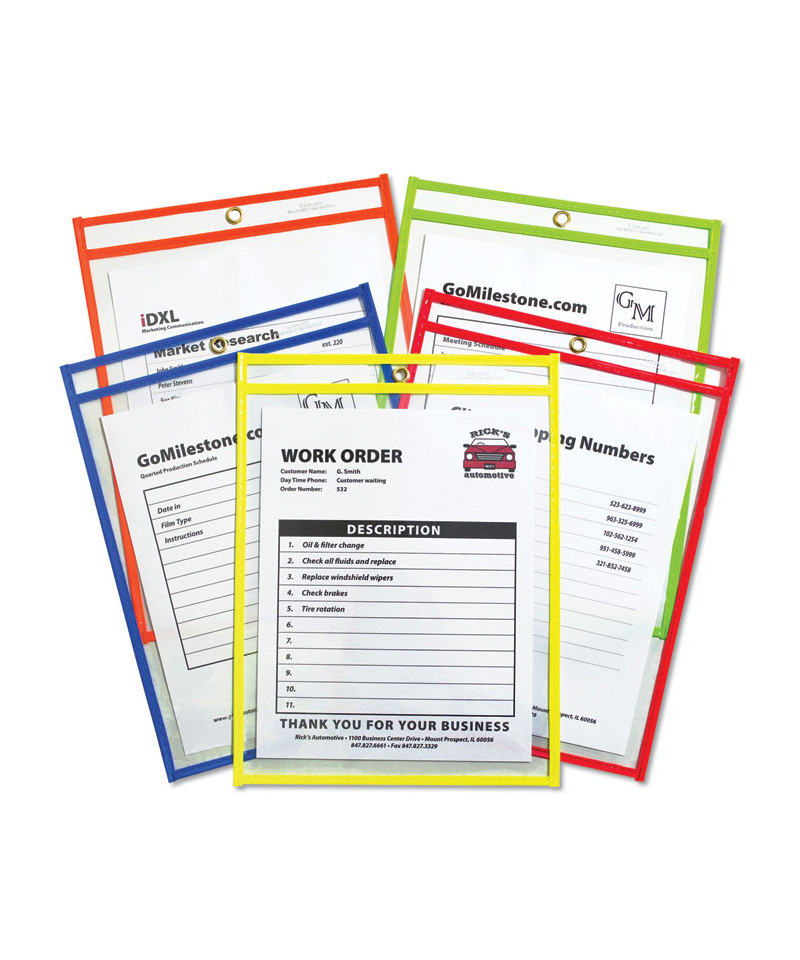 Organize paperwork by department, day-of-the-week, importance and more or simply color-code to make special jobs stand out. Regardless of the chosen path, C-Line's shop ticket holders with neon stitched borders make it easy. Sturdy, super-heavyweight vinyl construction and durably stitched borders provide long-lasting utility. All holders are clear on both sides to ensure easy visibility and feature metal headband grommets to accommodate easy display.