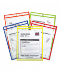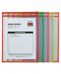 Neon Stitched Shop Ticket Holders, Super Heavy-Duty, Top Load 9 x 12 Insert, Clear Front, Assorted Neon Border Colors, 25/Box