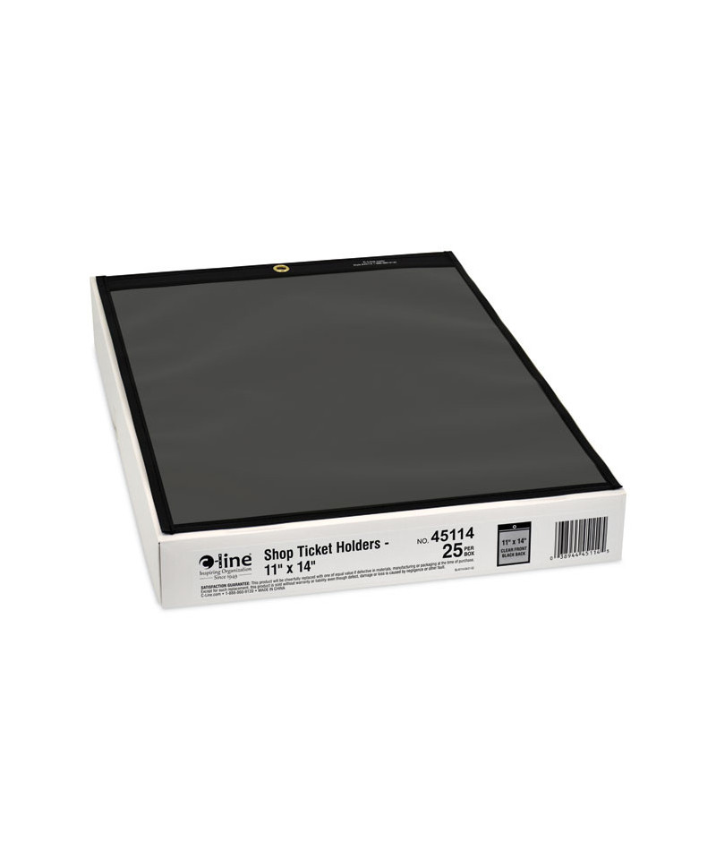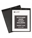 Stitched Shop Ticket Holders, Super Heavy-Duty, 11 x 14 Insert, Clear Front, Black Pressboard Back, Black Border, 25/Box