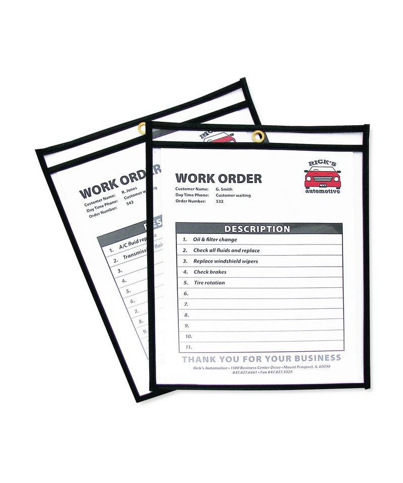 Stitched Shop Ticket Holders, Super Heavy-Duty, Top Load 8.5 x 11 Insert, Clear Front, Black Border, 25/Box