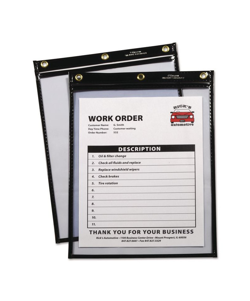 Super Heavyweight Plus Stitched Shop Ticket Holders, Top Load 9 x 12 Insert, Clear Front, Black Border, 15/Box