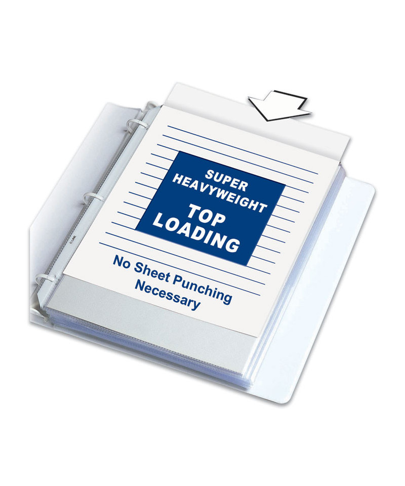 Includes 50 non-glare poly super heavyweight sheet protectors