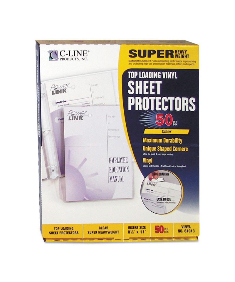 Expand the life of your documents by providing maximum durability. The thickness of these vinyl sheet protectors offers outstanding performance in preserving and protecting high-use documents, letters and reports. Uniquely shaped corners make pages easy to turn. Presentations stand out with heavy, rigid construction. No sheet punching necessary, since holders are pre-punched to fit with a standard three-ring binder.