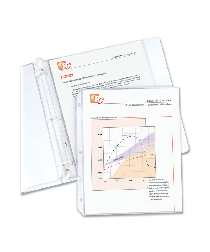 Keep documents protected and in their original condition with C-Line® Polypropylene Sheet Protectors. Top-loading sleeves prevent crumpling, tearing and various forms of handling damage while providing an element of moisture-damage resistance; and as they're pre-punched, there's no sheet punching required if you wish to insert important documents into your binder. Once inserted into binders, their reinforced binding edge minimizes the potential for damage. Manufactured acid-free to prevent photocopy transfer. This product will be cheerfully replaced with one of equal value if defective in materials, manufacturing or packaging at the time of purchase.
