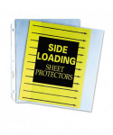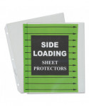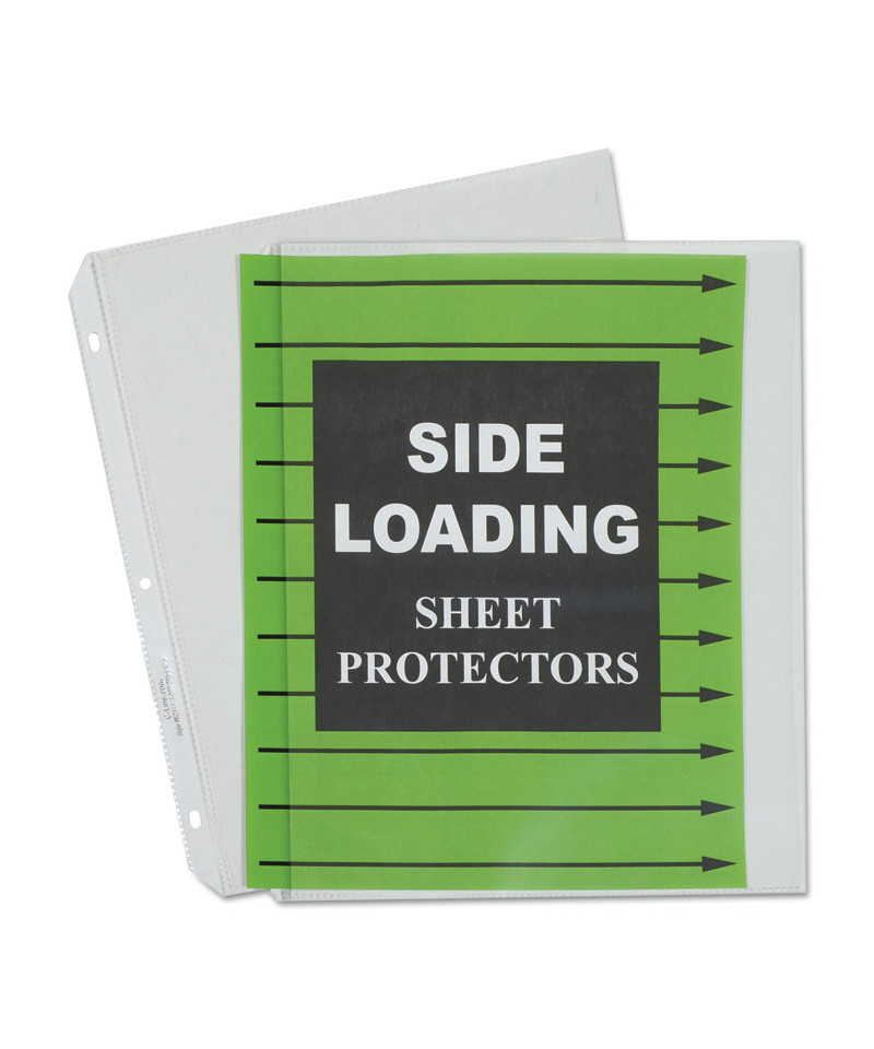 Worried about papers falling out of sheet protectors while in the ring binder? Side loading sheet protectors are sealed on three sides and loaded from the ring binding edge to secure the pages inside the holder. This assures that the contents will never fall out, even if the binder is turned upside down. Plus, the opening on the long side makes loading papers quick and easy. Heavy-gauge polypropylene construction ensures durability. No sheet punching necessary. Ideal for presentation use.