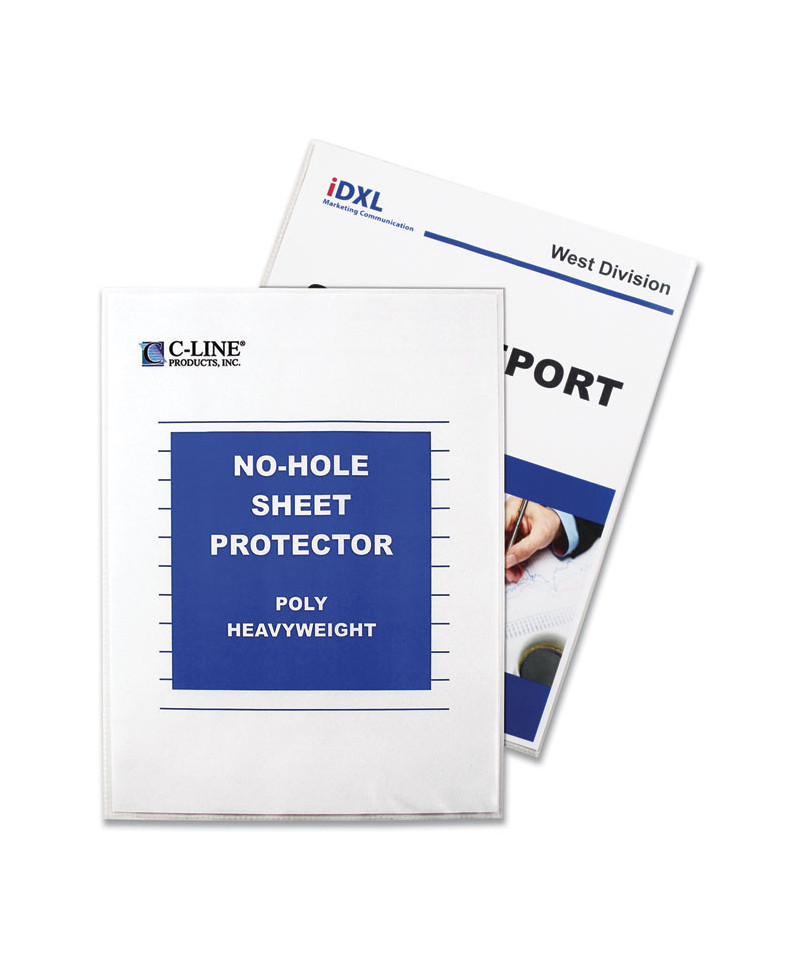 This unique document holder can provide the same level of protection as other heavyweight sheet protectors, but without the pre-punched binding edge. If documents are to be stored loosely instead of in a binder, this storage option has a much cleaner overall appearance. Use them to protect frequently used materials or to post signs and notices. Top-loading polypropylene sheet protectors are made of extra-durable heavyweight polypropylene, and they're manufactured acid-free to prevent photocopy transfer.