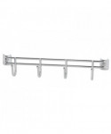 Handy hook bars hold garments, bags, utensils and supplies. Attaches easily to matching-sized wire shelves.