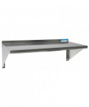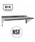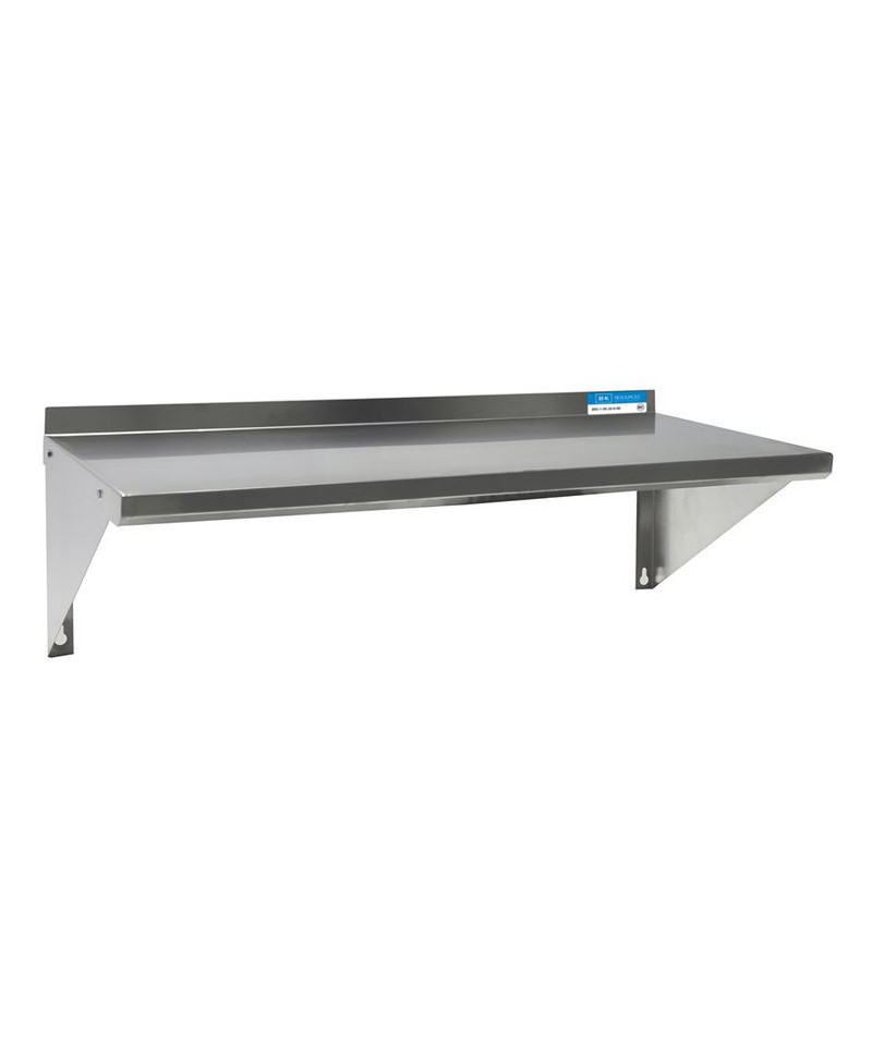 This wall-mounted shelving solution is constructed from durable 18-gauge T-430 stainless steel. It features a 1.5" rear turn-up for added stability and is supported by two 8" angle supports, providing a robust and space-efficient storage option.
