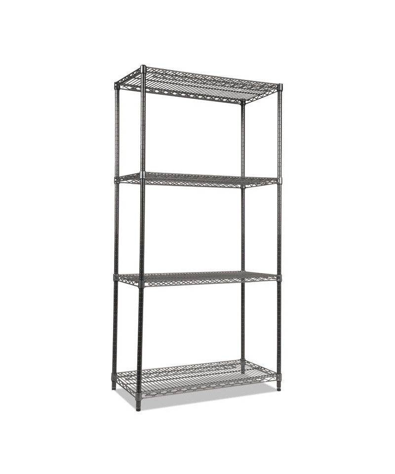 Wire Shelving Starter Kit, Four-Shelf, 36w x 18d x 72h, Black Anthracite