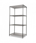 Ideal storage solution for commercial and restaurant use. Black Anthracite finish is National Sanitation Foundation (NSF) certified for wet and dry environments. Includes four shelves, eight 36" posts, floor leveling glides and conversion kit to convert to two half-height two-shelf units.
