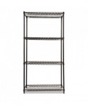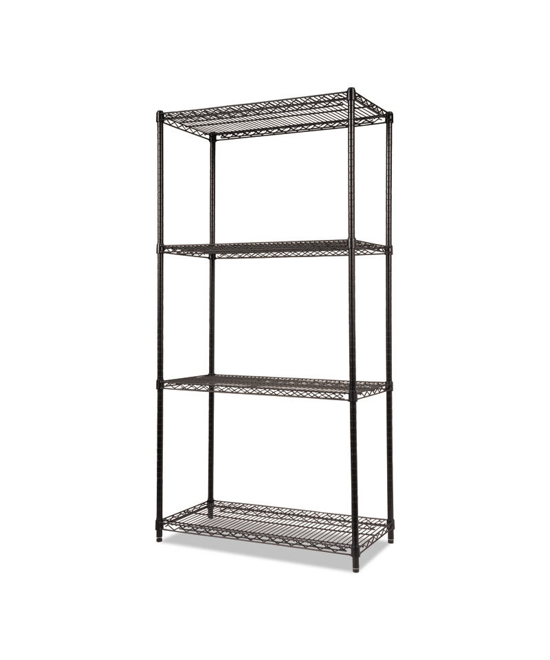 Strong welded wire construction storage units. Includes four shelves, eight 36" posts, shelf clips, feet leveling glides and conversion kit to create two half height (36" h) two-shelf storage units.