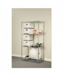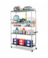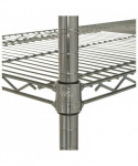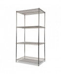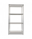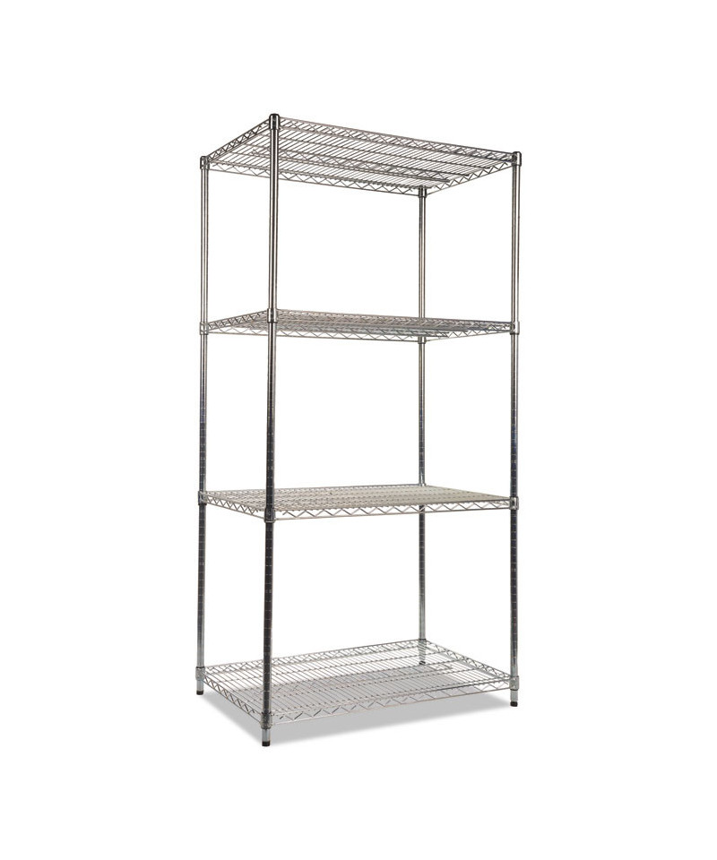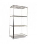 Strong welded wire construction storage units. Includes four shelves, eight 36" posts, shelf clips, feet leveling glides and conversion kit to create two half height (36" h) two-shelf storage units.