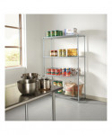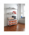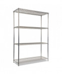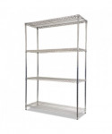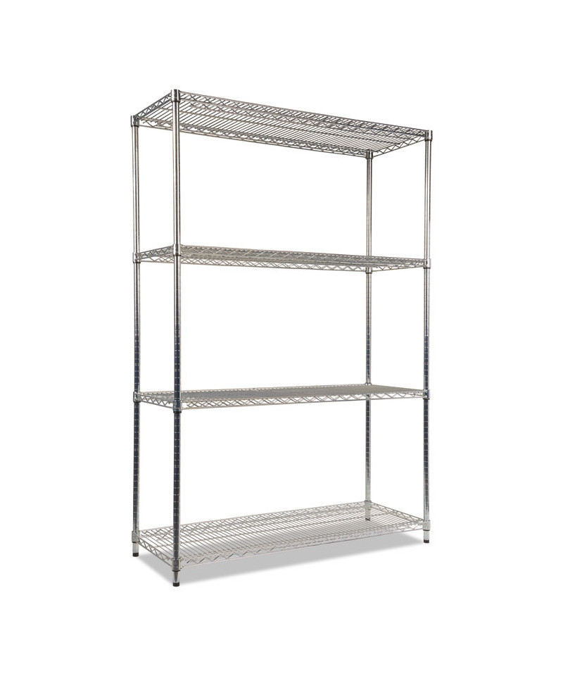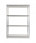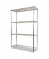 Strong welded wire construction storage units. Includes four shelves, eight 36" posts, shelf clips, feet leveling glides and conversion kit to create two half height (36" h) two-shelf storage units.