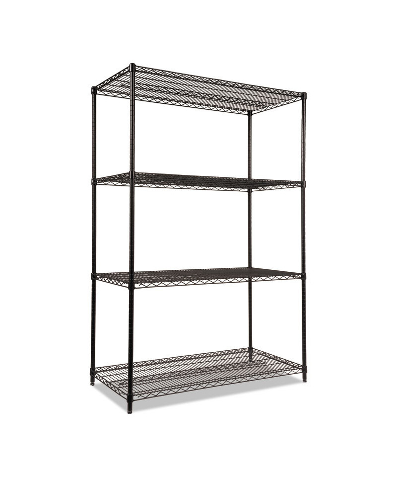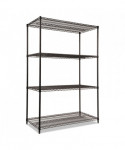NSF Certified Industrial Four-Shelf Wire Shelving Kit, 48"w x 24"d x 72"h, Black