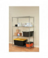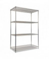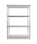 Strong welded wire construction storage units. Includes four shelves, eight 36" posts, shelf clips, feet leveling glides and conversion kit to create two half height (36" h) two-shelf storage units.