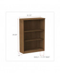 Woodgrain laminate bookcase features a contemporary design that fits perfectly in professional environments. Commercial-grade side panels with protective 3 mm edge banding provide excellent dent and scratch resistance. 11.75" deep shelves accommodate a wide range of materials. Top and bottom shelf are fixed, middle shelf is adjustable. Top panel is 14" deep for door installation. Tight, dowel, and cam-lock assembly provides a clean look while ensuring overall stability.