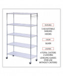 5-Shelf Wire Shelving Kit with Casters and Shelf Liners, 48w x 18d x 72h, Silver