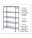 5-Shelf Wire Shelving Kit with Casters and Shelf Liners, 48w x 18d x 72h, Black Anthracite