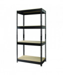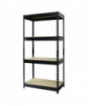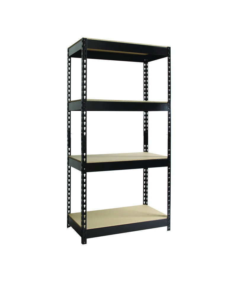 Steel Shelving Unit with Particleboard Shelves, Four-Shelf, 30w x 16d x 60h, Steel, Black