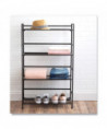 Organize items on this lightweight heavy-duty, powder-coated metal shelving unit. One-piece construction sets up in minutes, providing four wide shelves to stow supplies. Adjustable feet provide a level base. Unit folds flat, so you can easily move it from room to room.