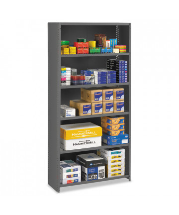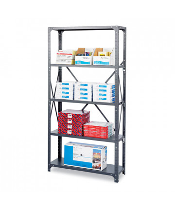 2300 Rivet shelving is designed for heavy-duty use. The boltless design allows for quick and easy assembly. The powder coated finish is rust resistant and durable. The Iron Horse® shelving unit can be assembled either horizontally or vertically, depending on your storage needs. Each unit includes rugged particle board shelves. Steel four-shelf unit holds a total capacity of 2,300 lb evenly distributed. Assemble with a rubber mallet (not included) in less than 30 minutes. Shelving is made of heavy-duty riveted steel construction.